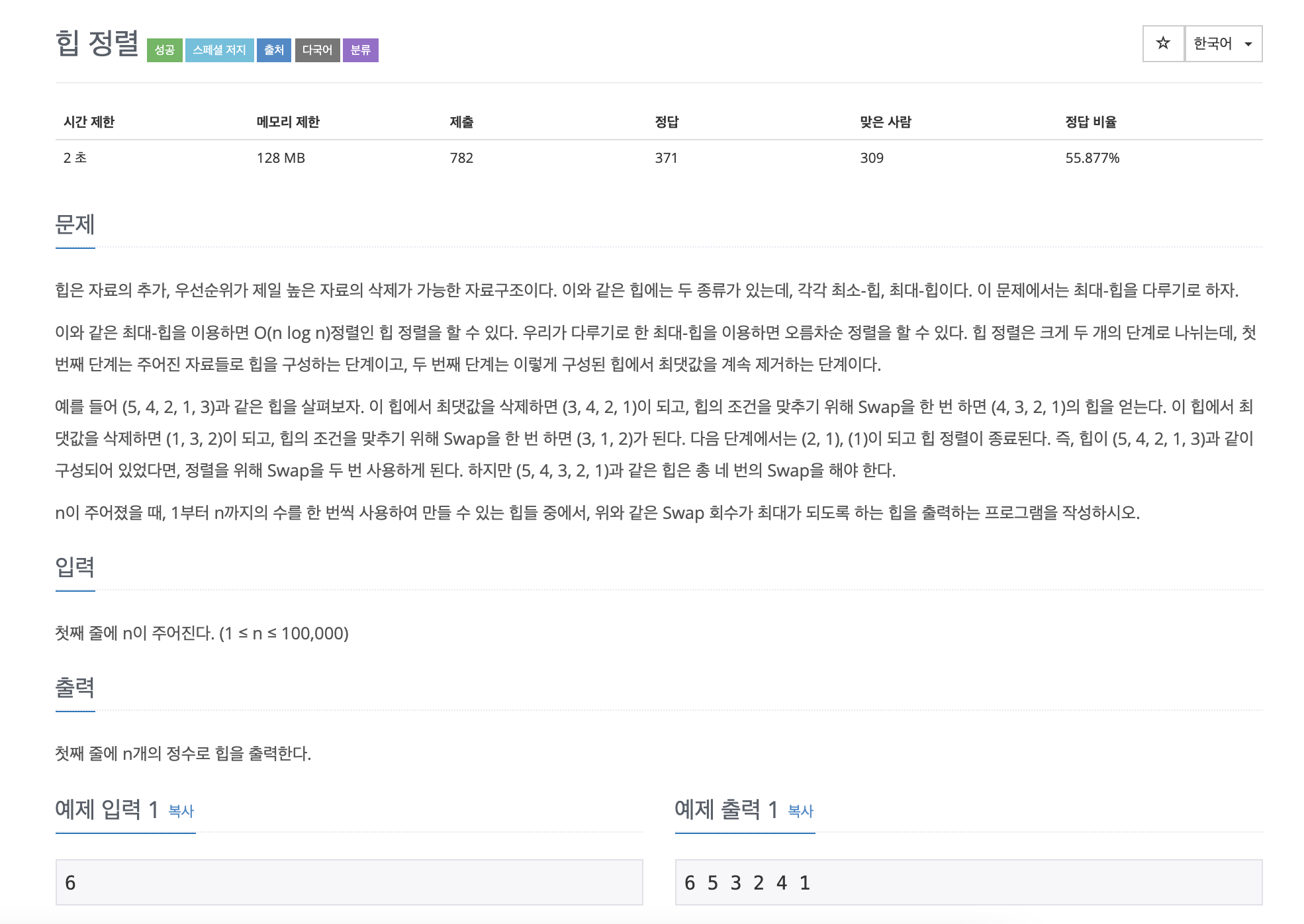 2220번: 힙 정렬